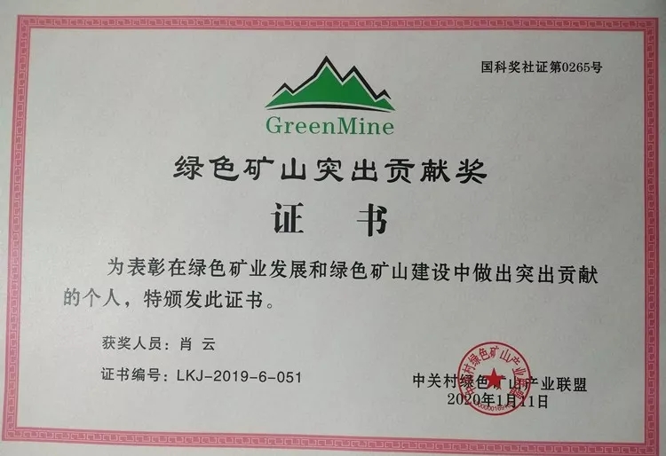 金徽礦業(yè)榮獲首屆全國綠色礦山突出貢獻(xiàn)獎(jiǎng);金徽礦業(yè)副總經(jīng)理、院士專家工作站核心成員、國家科技進(jìn)步獎(jiǎng)獲得者、全國勞模肖云教授榮獲首屆綠色礦山突出貢獻(xiàn)獎(jiǎng)(個(gè)人)。